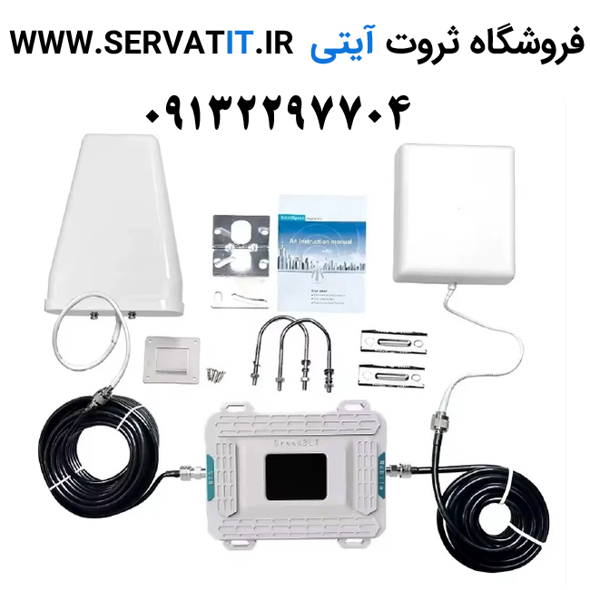 پکیج تقویت کننده آنتن موبایل هوشمند سه باند 1200 میلی وات مارک Kathrein مدل GreemBLT با آنتن پنلی